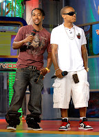 Bow Wow and Omarion stopped by MTV’s TRL in New York today to promote their forthcoming collabo album ‘Face Off’. Call me a hater or whatever, but I doubt the CD will be saying much. I felt their collabo on ‘Let Me Hold You’ to be pretty underwhelming. What’s more, neither have proved their worth as solo stars; with their recent albums just scrapping Gold status. I’m guessing this joint project is just a way of ensuring each of their fan-bases buy it – hence equalling larger sales overall.{Click pics to enlarge}