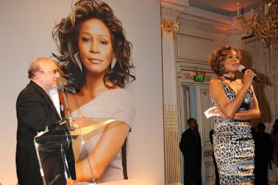 A radiant looking Whitney Houston was joined by mentor Clive Davis last night here in London at the Madarin Hotel to preview her ‘comeback’ album ‘I Look To You’ to select media and VIP’s. Ms. Houston received a standing ovation from the audience upon her entrance, as well as after the album’s R.Kelly penned title track was played.