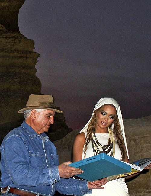 The worldly Beyonce made a trip to the Pyramid Plateau in Egypt to visit the Sphinx this weekend. The singer, who is currently facing serious legal allegations, was taught a bit about Egyptian history from the Secretary General of the Supreme Council of Antiquities, Zahi Hawass.