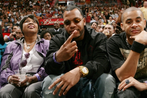 Rapper Flo Rida and his gigantic watch also enjoyed watching some basketball at the American Airlines Arena in Miami.