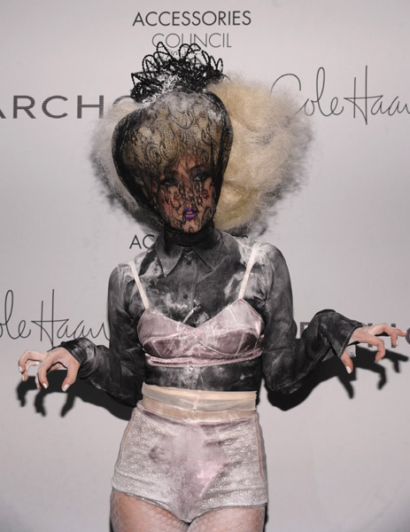 ‘It chick’ of the moment, Lady GaGa donned yet another of her trademark wacky outfits while attending the 13th Annual Accessories Council Excellence (ACE) Awards at Cipriani in New York last night. The ‘Just Dance’ singer was presented with the Stylemaker Award by famed designer Marc Jacobs.