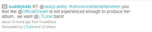 this is a bad look for mariah fans. this was dead a** wrong on so many levels . if you all had a problem with how the album was handled why didn’t ya’ll take this to mariah’s page instead the dream ? he may have produced the album , but it was mariah’s choice to work with him.