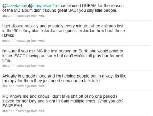 The-Dream, who was engaged in a heated argument with a group of Carey’s fans, then released the following statements about the situation via his own Twitter account:
