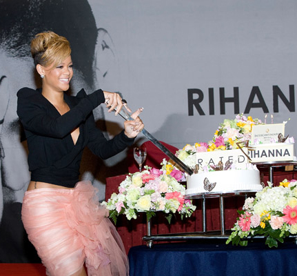 Rihanna was spotted at the InterContinental Hotel in Seoul, South Korea today. The Bajan beauty, who will be celebrating her 22nd birthday on February 20th, was given a cake to celebrate the occasion. Check out more pics below: