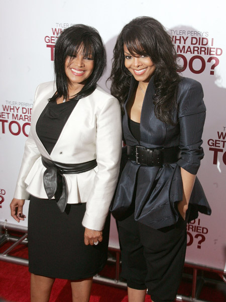 Superstar Janet Jackson graced the red carpet at the première of her new movie, ‘Why Did I Get Married Too’ last night. The youngest of the Jackson clan was joined by the oldest, big sister Rebbie, who is renown for being the most private member of the family, when it comes to media attention. As hard as it may be to believe, Rebbie is approaching 60 years old! Both looked stunning! Check out more pics below…