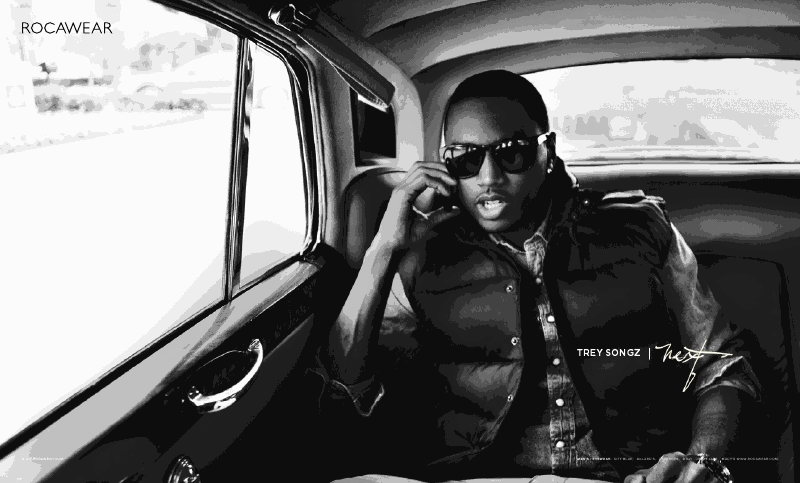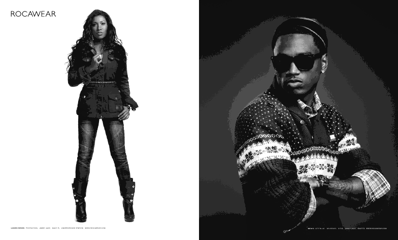 Melanie is pretty, but she’s not photogenic. Trey Songz looks stupid! I really don’t like it when musicians pose for clothing, cosmetic, or fragrance campaigns. It’s showing too much of an image. And plus, Rocawear is f**king wack and played out! I’m surprised that they are stills shooting ads for this sh**?