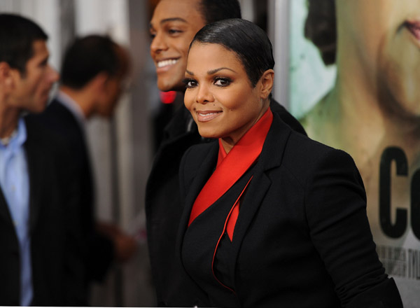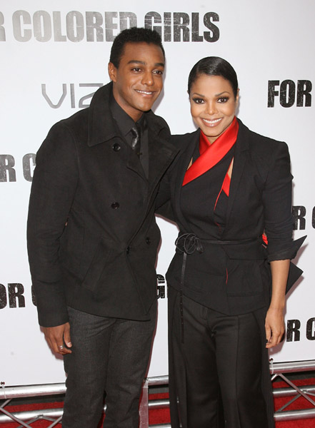 A glowing Janet Jackson was the talk of last night’s première of Tyler Perry’s ‘For Colored Girls’. The 44 year old megastar, who stars in the movie alongside Whoopi Goldberg, Kerry Washington, and Thandie Newton, was accompanied by her nephew Austin Brown.