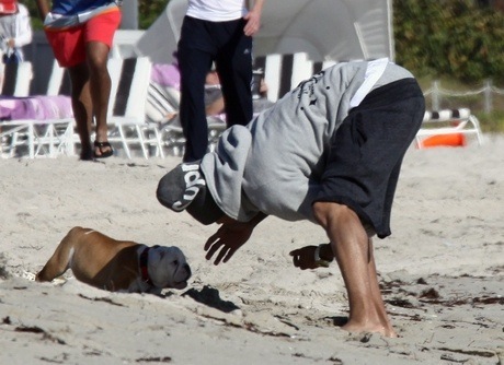 Guess who was spotted on Miami Beach playing with his new bulldog puppy. Hint: he is starting his world tour in January! See the answer below: