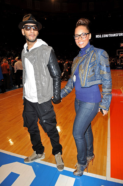 Alicia Keys attended the Knicks vs Heat game at Madison Square Garden in New York City last evening. Also in attendance were the singer’s husband, Swizz Beatz, and fellow hitmaker Kanye West. See more images below: