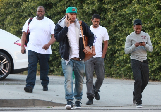 Chris Brown was spotted in Los Angeles earlier this week. The singer/songwriter looked more serious than usual as he led his entourage to the studio. See more images below: