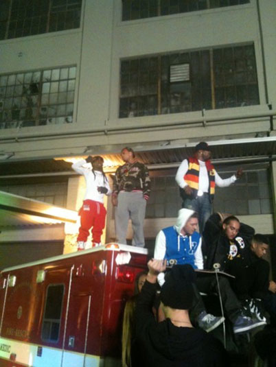 Chris Brown, Lil Wayne and Busta Rhymes were spotted on the set of their new video for ‘Look At Me Now’ yesterday. The Colin Tilley-visual is being shot to support the track which serves as the 2nd single from Brown’s eagerly-anticipated upcoming album, ‘F.A.M.E’, which hits stores on March 22nd.