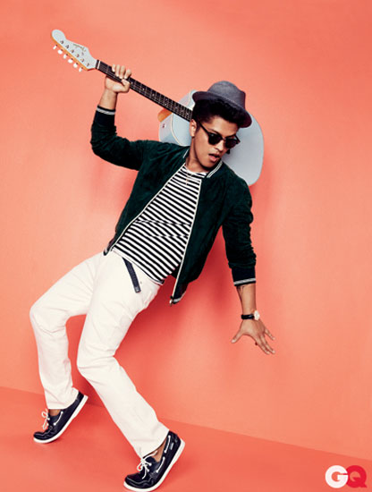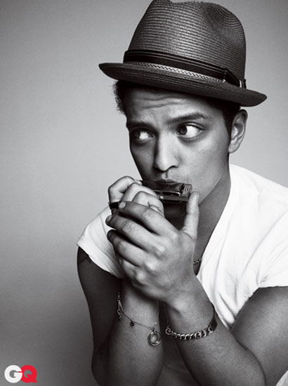 ‘Grenade’ singer Bruno Mars poses it up in the latest issue of GQ magazine. The singer-songwriter, who rose to industry prominence as part of production group The Smeezingtons, has had much success as a solo act over the latest year – notching up a Grammy in the process.