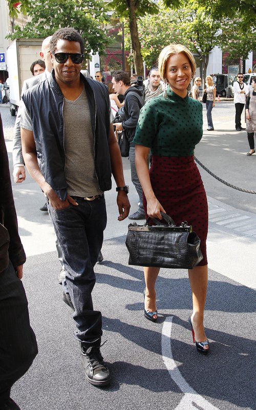 She looks regal. Shoes. Bag. Banging dress. And oh so fresh faced. Honey B in Paris with her man. Haters @ their S*** jobs with nothing but negativity to breed. Oh well