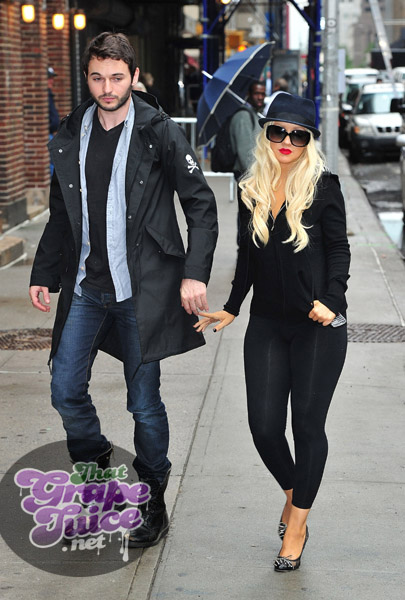 Christina Aguilera and boyfriend Matt Rutler were snapped arriving at the Ed Sullivan Theater last night for her taping of ‘Late Show With David Letterman’.