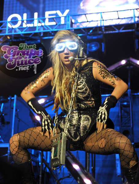 Taking the visuals up a notch, Ke$ha came out with a slew of mohawked, blue-lipped dancers behind her, the perfect complement to her sassy singing style. She proceeded to fire on the crowd with a glitter gun and even rocked an electric guitar for part of the set, which included chart-toppers “Blah, Blah, Blah,” “We Are Who We Are” and the track that put her on the map, “Tick Tock.”