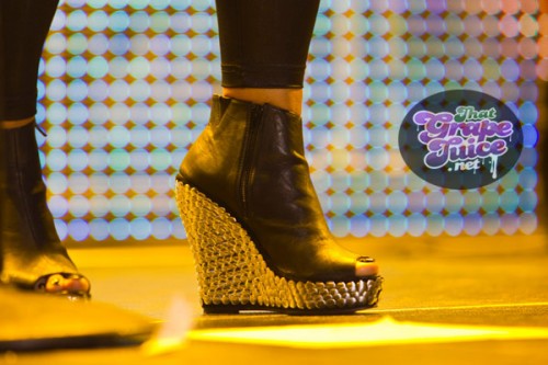 Can you guess who was snapped wearing a sparking pair of wedges this weekend in New Orleans? Find out after the jump…