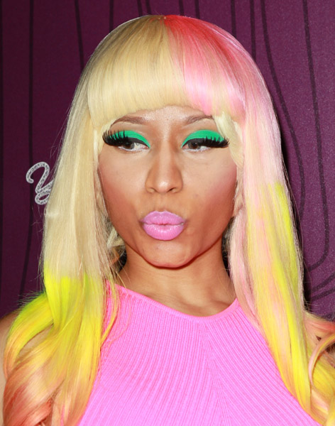 Nicki looks a hot colorful ass mess…..as usual. It’s like she always purposely tries to make the worst dress list. But it’s obvious she doesn’t care cause she keeps doing it.