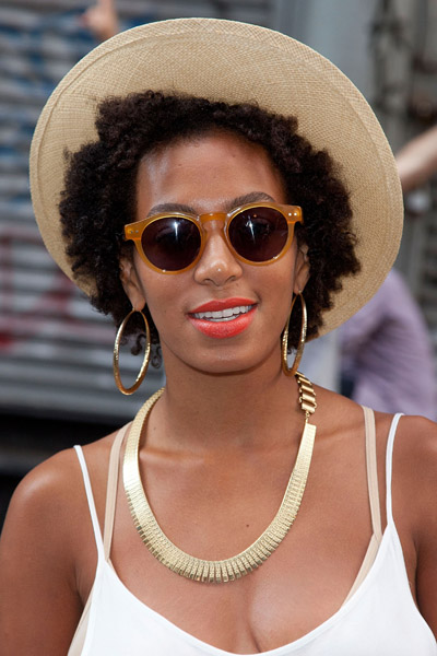 Peep singer Solange Knowles rocking the au naturale look in New York City earlier today..