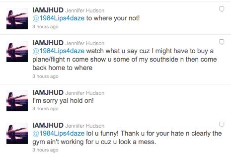 Damn Jen Really!?!?!? If I was a celeb I would rarely interact with fans on twitter, as a matter of fact, I wold let the record company run my twitter to avoid bull like this! SMH. Chris Brown I expect this from, but Jennifer Hudson? Really?