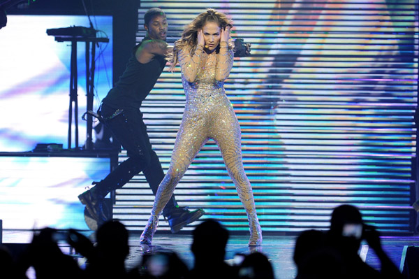 Donned in the diamond encrusted catsuit from her ‘On The Floor’ clip, the diva rocked the house at Mohegan Sun’s 15th Anniversary Celebration.