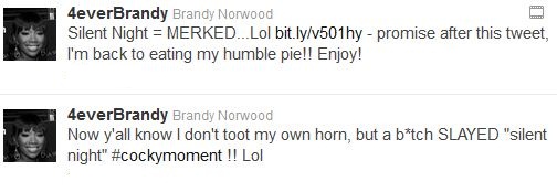 On the other hand, we still say kudos to Brandy for acknowledging the beastery that is “Silent Night”. Considered by many to be a “vocal Bible” of sorts, Ms. Norwood is certainly one of the few who can (playfully or seriously) boast about being “one of the baddest in the game”. This being in an arena where so many, unfortunately, think being able to sell a record or talk the talk equates support of such claim.