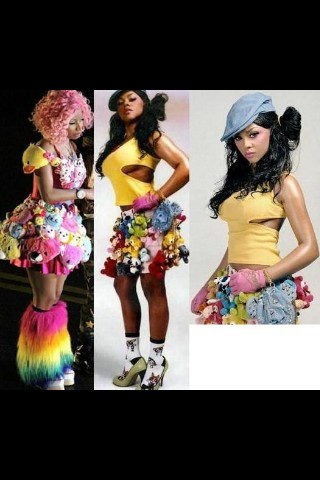YOU NOE WHAT IM SICK && TIRED OF THESE COMPARISONS!!! IF ITS SO BAD FOR NICKI TO WEAR BLUE WIGS AND DRESSES WITH STUFFED ANIMALS ON IT WHY DONT YOU YELL AT ALL THEM PEOPLE IN TOKYO!!!!YELL AT LADY GAGA FOR WEARIN BLUE WIGS AND DRESSES WITH KERMIT THE FROG!! (IF YOU DONT KNOW..GOOGLE IT!) DAMN IF ITS SUCH A PROBLEM THEN ACCUSE THEM FOR SWAGGA JACKIN DONT DO ONE!!! DO ALL!!! DAMN AND ANYWAYS LIL KIM IS SOO IRRELEVANT LIKE COME ON ITS ABOUT TO BE 2011 AND YAH STILL ON THESE 2010 LIES?!?! LIL KIM IS WASHED UP AND NEEDS TO HIT THE DRYER!! WHERES HER MUSIC LIKE CMON NICKI IS SHITTIN ON EM!!!