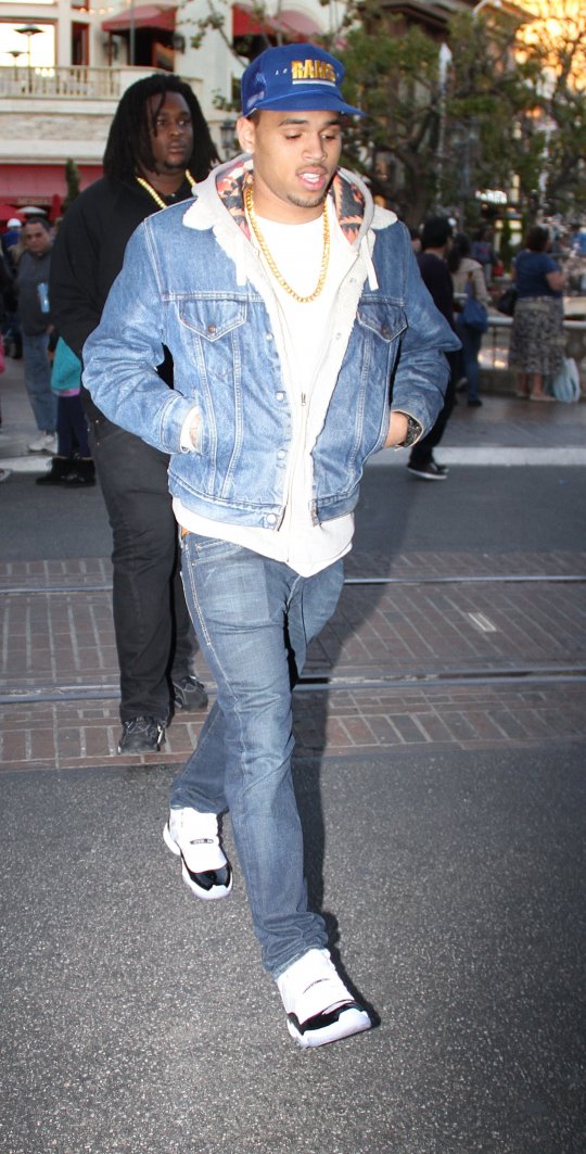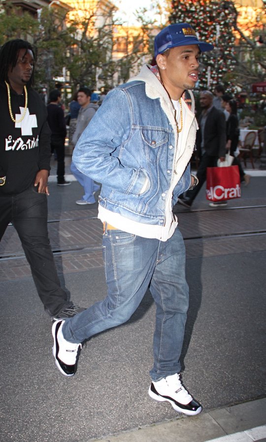 Check out these snaps of ‘She Ain’t U‘ singer Chris Brown sporting a fresh pair of the newly released Jordan Concord 11’s at the Grove, Hollywood last night.