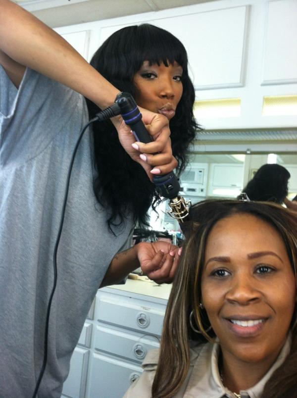 So today, in support of her role on the show, the songbird tweeted a snap of herself on location showcasing her cosmetology skills by way of her hairstylist Nikki Wright.