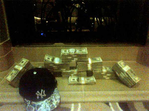 Tell me when you see other individuals with real money doing this foolishness. Funny the first thing I thought of was his credit/bank, seriously why do you physically need that amount of money with you? Can you not write a check or swipe your card?