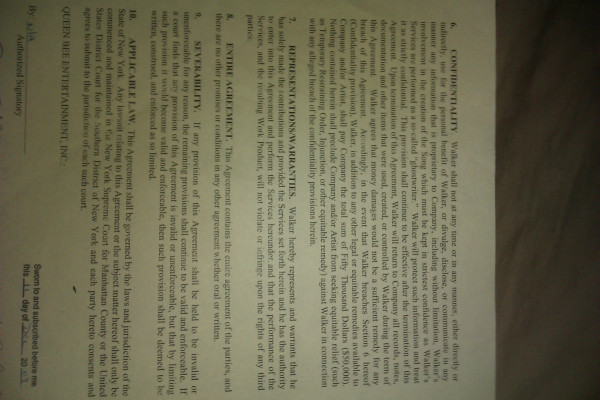 The first copy does state QUEEN BEE ENTERTAINMENT for those asking wheres Lil Kim’s name on this. If he didn’t get paid then thats a breach of contract so it doesn’t matter if confidentiality no longer remains, this only applies for the duration of the contract. But now he’s lost all chances of ever getting paid just for making this document public, but i don’t think she can sue him since she failed to pay. In the confidentiality clause it states something about $50,000, so I’m sure she would owe him more than that, so he figures if he’s not gonna get paid then the least he could do is put her on blast.