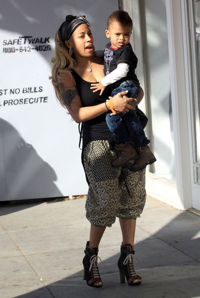 ‘Let It Go’ singer Keyshia Cole was spotted on the go with son Daniel Gibson, Jr. in Los Angeles yesterday. Rocking a stylish ensemble, the snaps caught the mother/son duo out shopping on West Hollywood’s lavish Robertson Blvd.