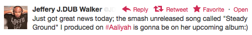 Fans of late R&B chanteuse Aaliyah were sent into a frenzy today when Jeffrey “J. Dub” Walker, of the famed production group The Hitmen, took to Twitter to announce (click to enlarge):