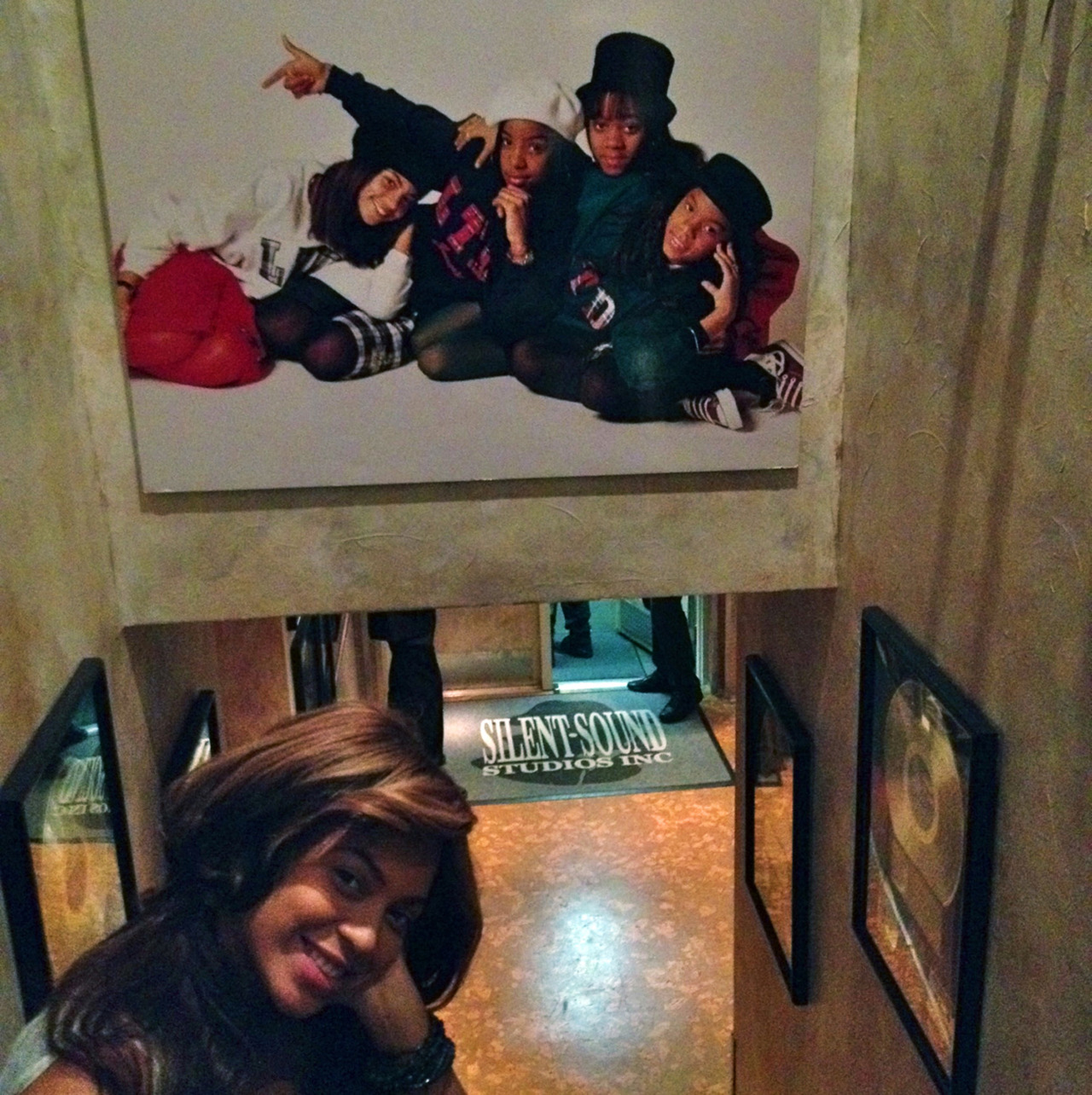 In the above snap uploaded on the star’s Tumblr page, she can be seen posing underneath a pic of the original Destiny’s Child, made up of Kelly Rowland, La Tavia Roberson, Letoya Luckett and herself.