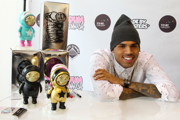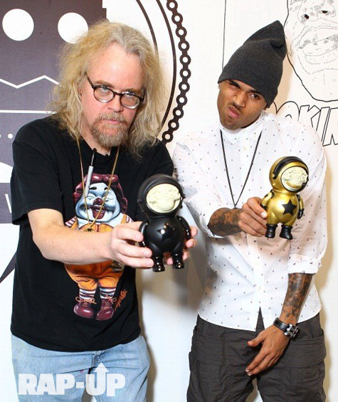 ‘Turn Up the Music’ maestro Chris Brown turned up at the Toy Art Gallery in Los Angeles today to unveil his new toy line ‘Dum English’ – a collaboration with famed artiste Ron English. Signing autographs and showcasing the creations for onlookers were only two of the duties the Grammy winner was on hand to perform.
