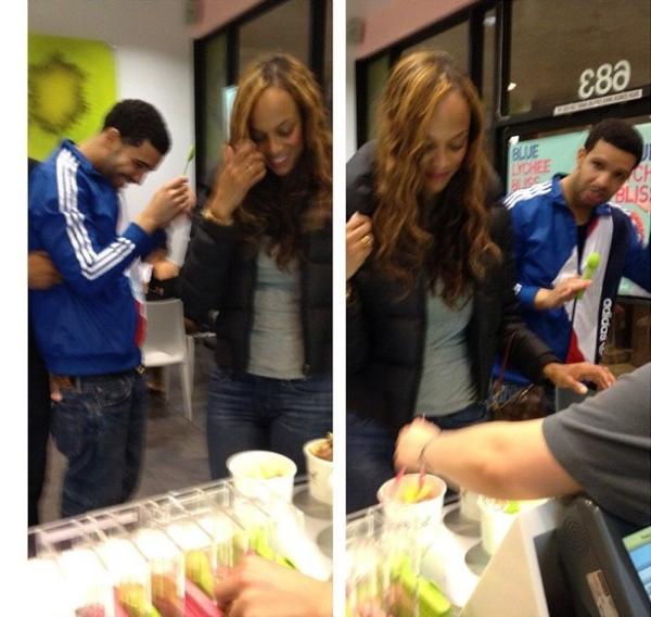 NO! drake is dining with the DUDE holding him on the picture on the left…and look how he holds that spot on the right…tsk tsk tsk….i don’t judge people..