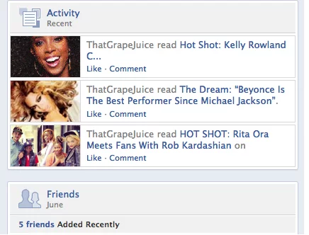 The “app” which publishes the TGJ stories you’re reading to your Facebook timeline (with links so your friends can read them too), sees That Grape Juice join an elite list of premium brands who’ve engineered similar experiences. They include Spotify, The Huffington Post, Viddy, and MTV.