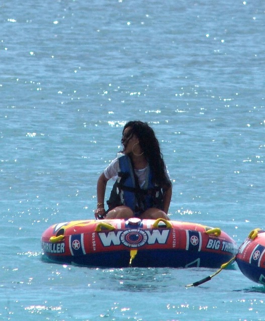 Rihanna was all smiles yesterday, having a blast on ski ring during her trip to her homeland of Barbados.