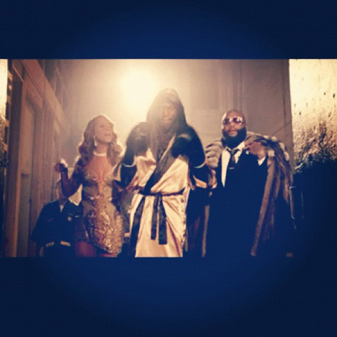 Dressed in Gold and directed by husband Nick Cannon, the Platinum diva can be seen heading to a boxing ring in the snap above with collaborators Rick Ross and Meek Mill.