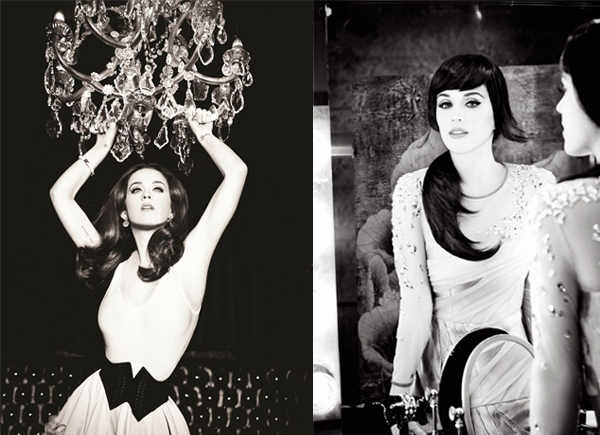 The normally colorful Katy Perry stuns in this glossy black-and-white set for her ongoing partnership with ‘GHD’ (Good Hair Day).  Going back to black, the ‘Wide Awake’ wailer posed it up for photographer Ellen von Unwerth in a number of settings for the hair care campaign, lending a classic look oft-unseen from the ‘songstress’.