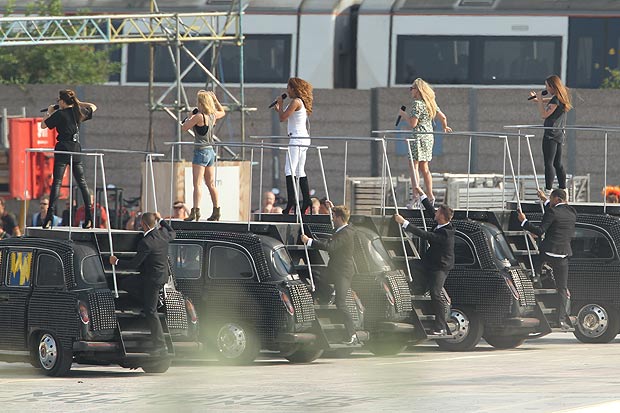 Cop a gander at Brit Pop force the Spice Girls, reportedly in rehearsals for tomorrow evening’s Olympic Closing Ceremony.