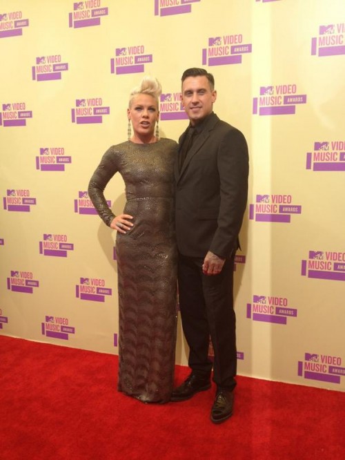 Frank, you are going to the VMA’s and performing probably for the one and only time, because your letter stunt will probably have cooled down by then, so you should have been dressed better for this occasion. Pink and her husband look great, as does that bold blonde child whose name I just forgot.