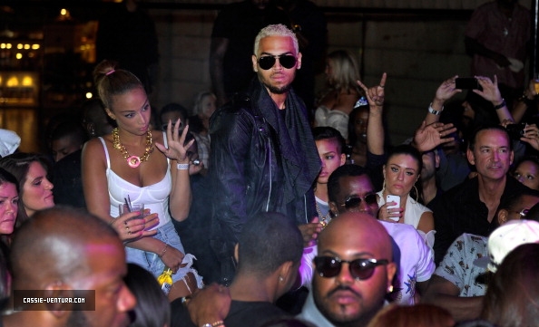 Snapped in party mode, Brown’s sighting comes weeks before his latest album ‘Fortune‘ rocketed to the top of the US Album’s chart and days after it emerged he is not to perform at the 2012 MTV Video Music Awards.