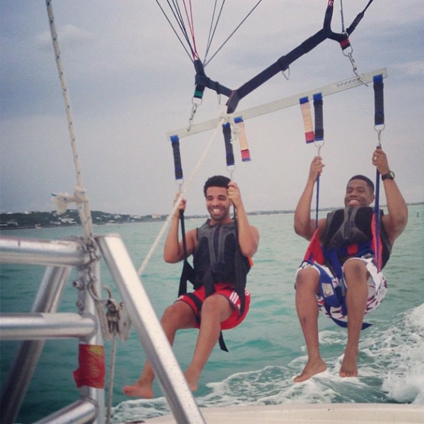 So, perhaps in celebration of his recent achievements, the Rapper is currently on vacation with a number of close friends-including personal trainer Ovo Jonny Roxx – and had the above pic shared with his fan base last night.