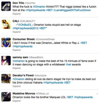 He missed the best tweet of all!! Quote “N***** said Omarion slid on stage like he hit the speed boost in Mario kart”unquote <<<—- #DEAD too bad I missed the awards.