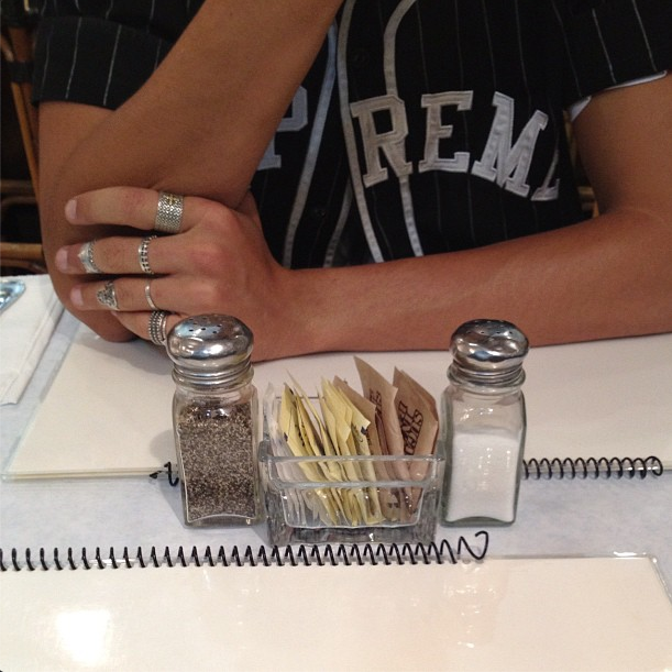 The picture with the arms and salt shaker says it all, obviously they are together. It’s so intimate yet so un-revealing but who takes a picture of their friends arms like that?
