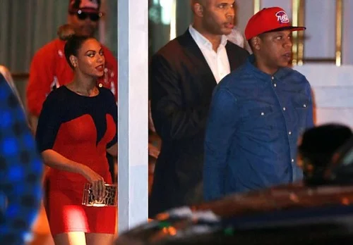 Looking like a bag of money and good living, Beyonce and hubby Jay-Z were snapped leaving the Soho Beach Club in Miami last night.