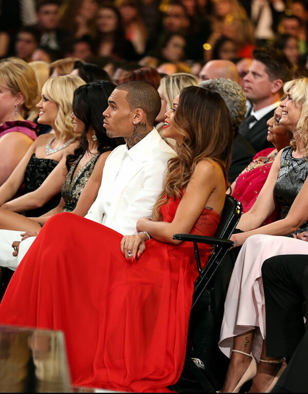 I only been watching the Grammys for Rihanna and to see Chris Brown, because the Grammys is really boring this year. Chris and Rihanna looks so cute, I see they have valentine colors on, so cute.