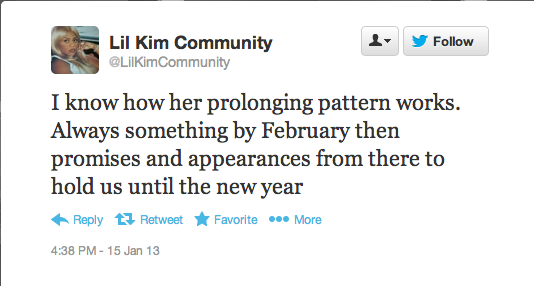 Whether you agree or not, the Hip-Hop market has changed and Lil Kim is having hard time keeping up with that. You have to CONSTANTLY be releasing new material these days to keep up with this generations “15 mins. of Fame” attention span and she has not been so successful at that thus far. HER THEOLOGY on the Hip-Hop scene and what it should be be is not what the masses are conforming to so right now…