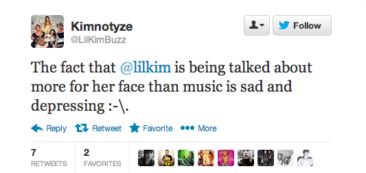 I grew up with Lil Kim the truth of the matter i would be open to her making a comeback but she waited to long it seems to me that if she treated her career like the was she treats getting plastic surgery she would be dope cant make an if you our always in recovery trying to heal from another nose jobs be yourself AND GET BACK TO GO HARD ON THE MIC 16 BARS PLEASE AND THANKYOU