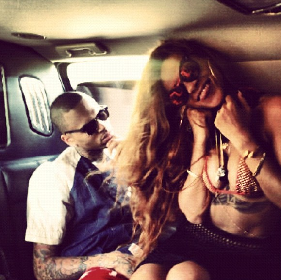 CB is high as sh*t, he always look like that when is at the club and plus their plenty other pictures of them all hugged up on other blogs. CB knows people going to say he isn’t into her, he was sure cheesing at the Grammys.